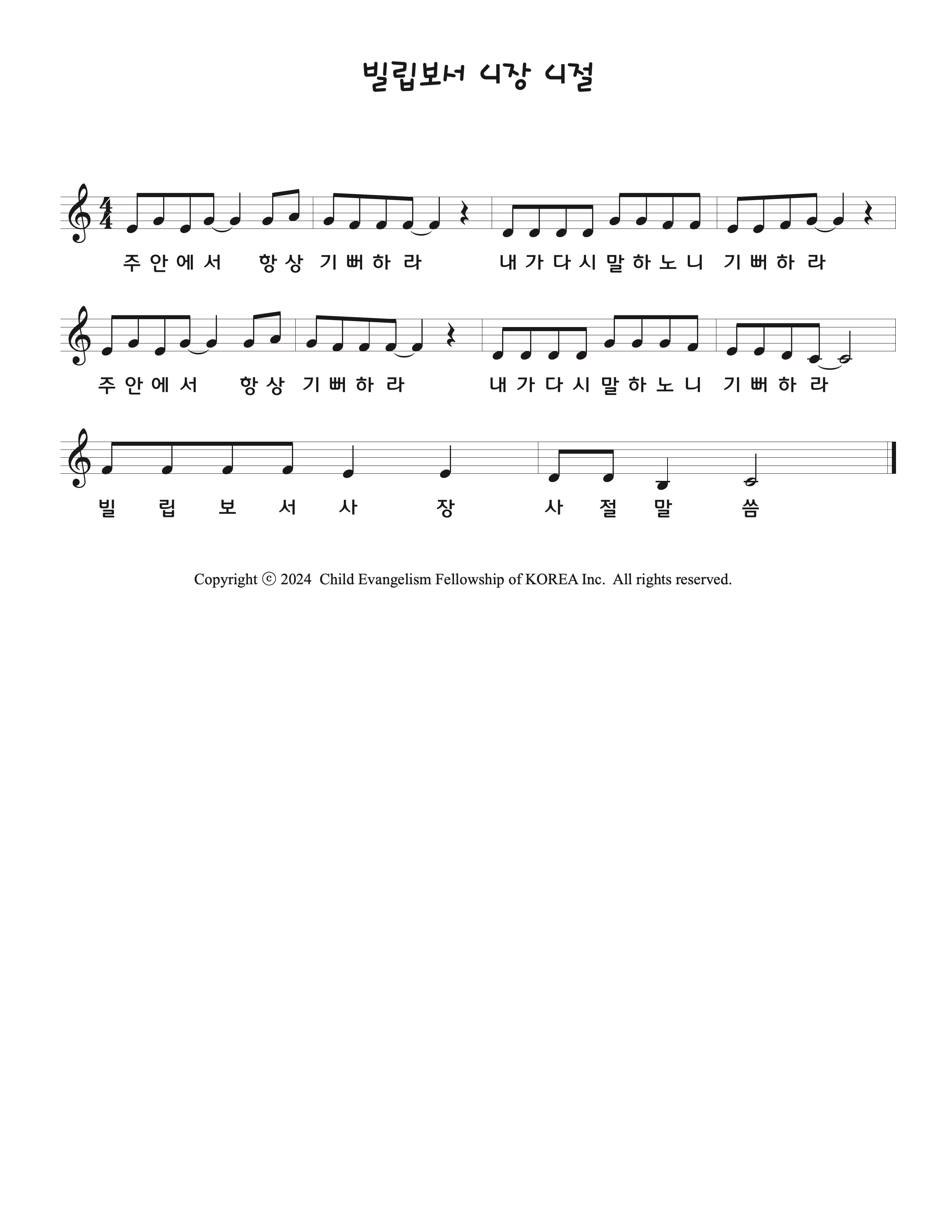 250810 '빌립보서 4장4절' 악보