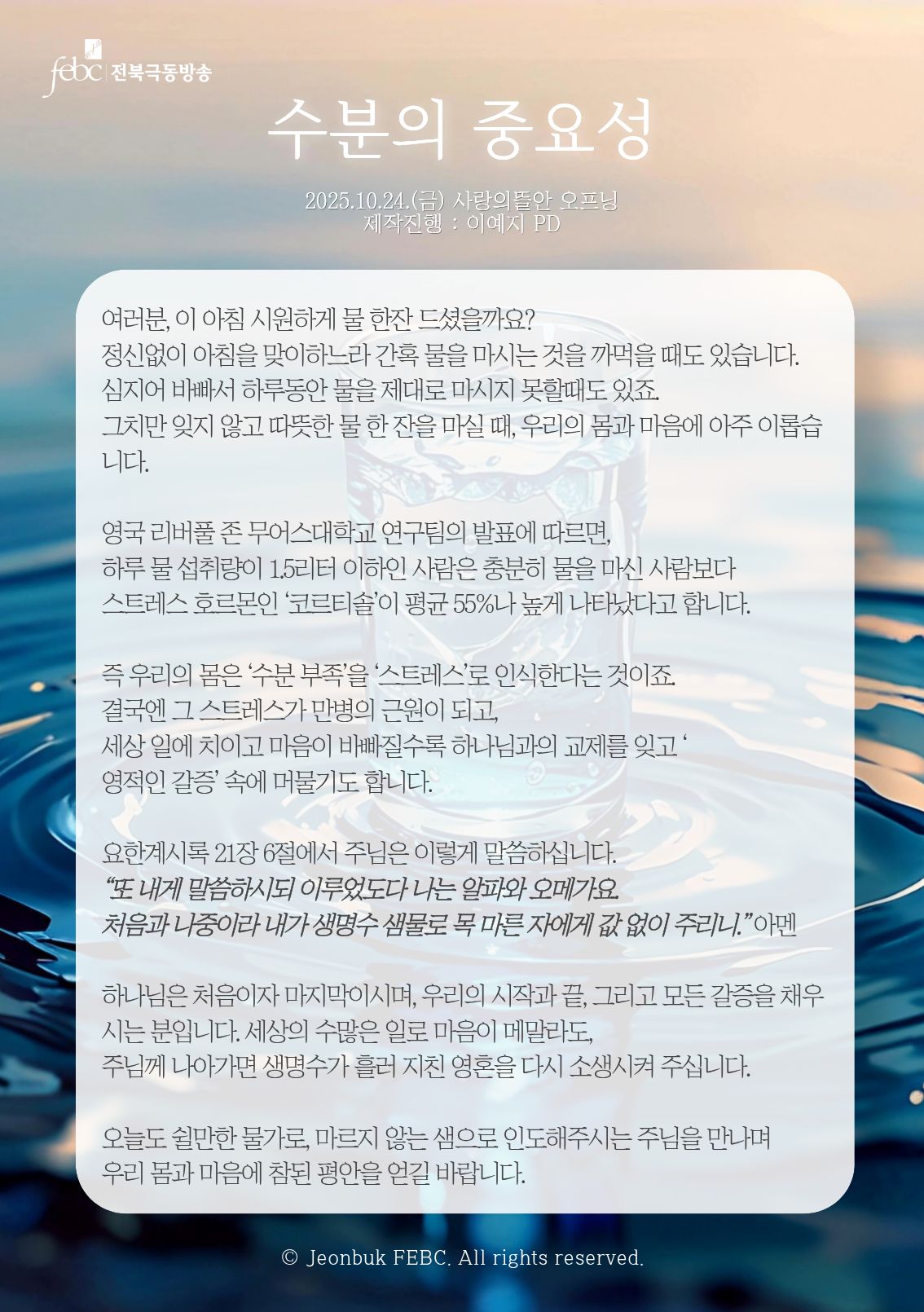[전북] 25.10.24.(금) 사랑의뜰안 오프닝 "수분의 중요성"
