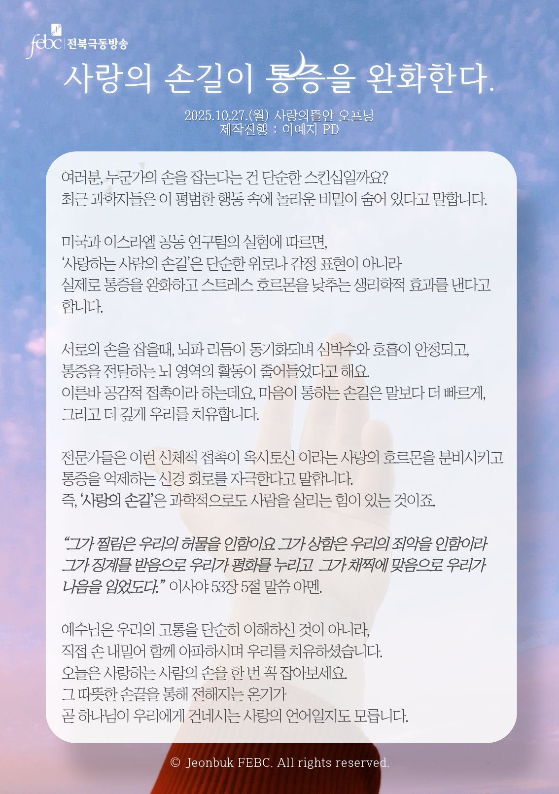[전북] 25.10.27.(월) 사랑의뜰안 오프닝 "사랑의 손길이 통증을 완화한다."