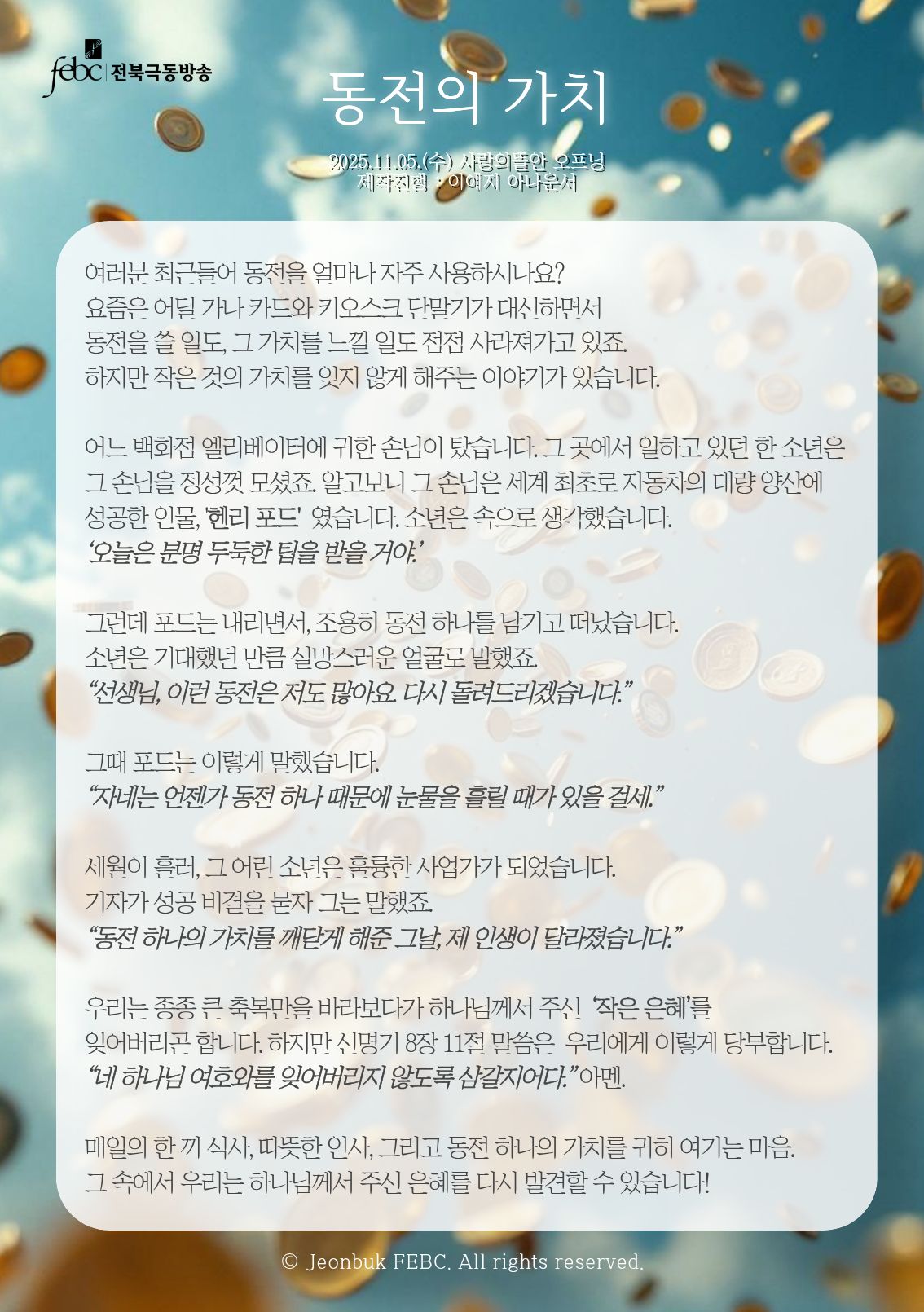 [전북] 25.11.05.(수) 사랑의뜰안 오프닝 "동전의 가치"