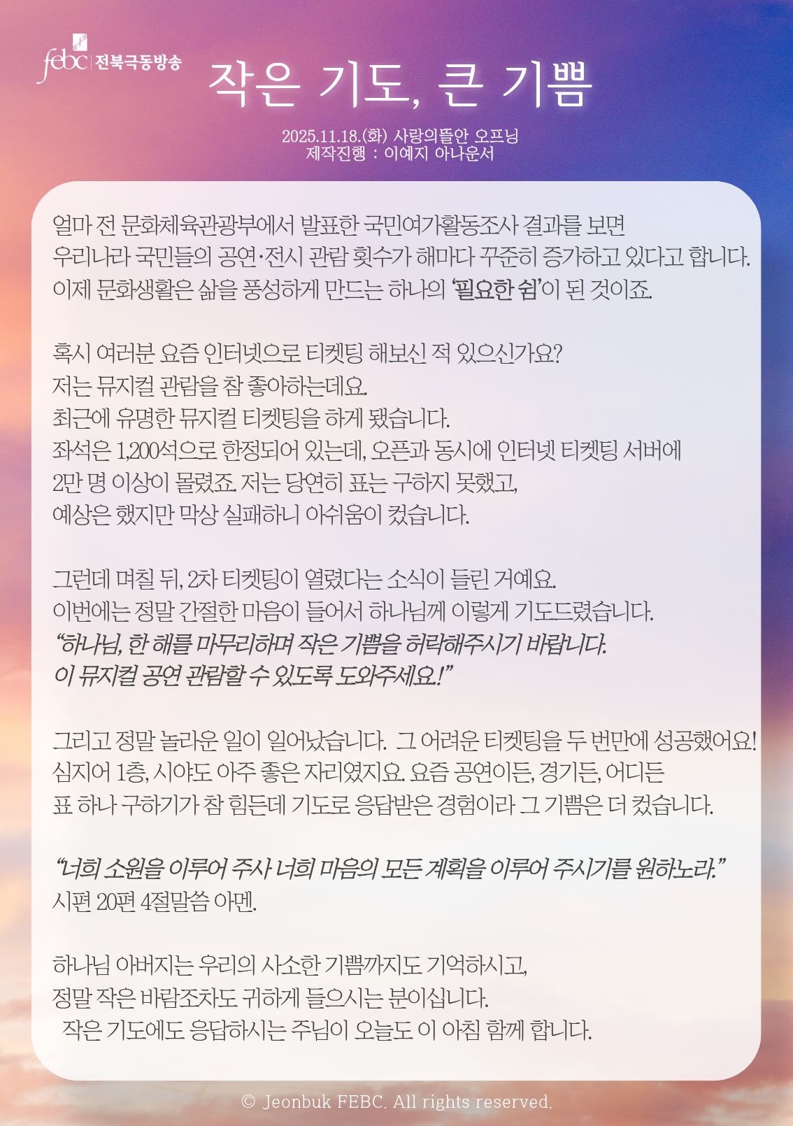 [전북] 25.11.17.(월) 사랑의뜰안 오프닝 "작은 성실"