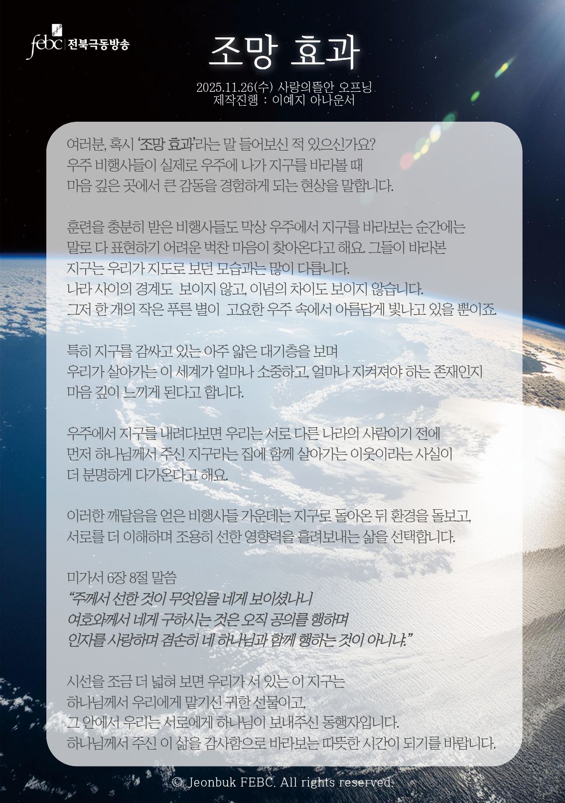 제작진행 : 전북극동방송 이예지 아나운서