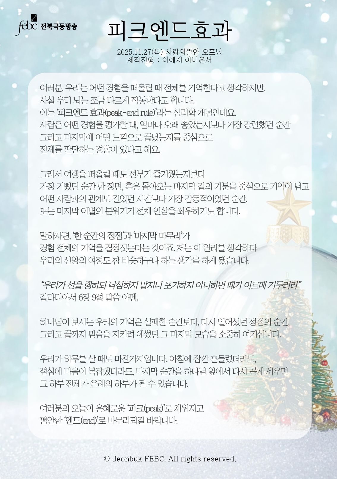 [전북] 25.11.27.(목) 사랑의뜰안 오프닝 "피크엔드효과"