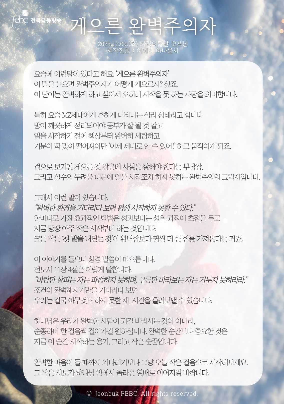 [전북] 25.12.09.(화) 사랑의뜰안 오프닝 "게으른 완벽주의자"