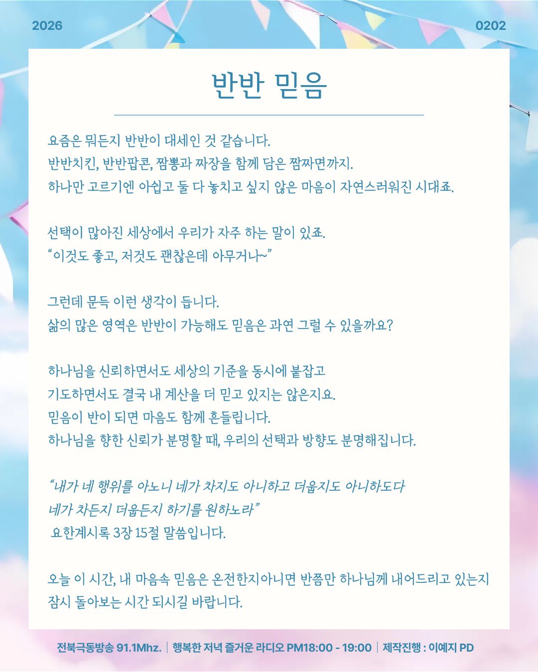 2026년 2월 2일 오프닝 [ 반반 믿음 ]