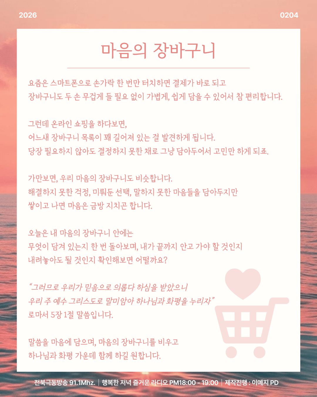 2026년 2월 4일 오프닝 [ 마음의 장바구니 ]