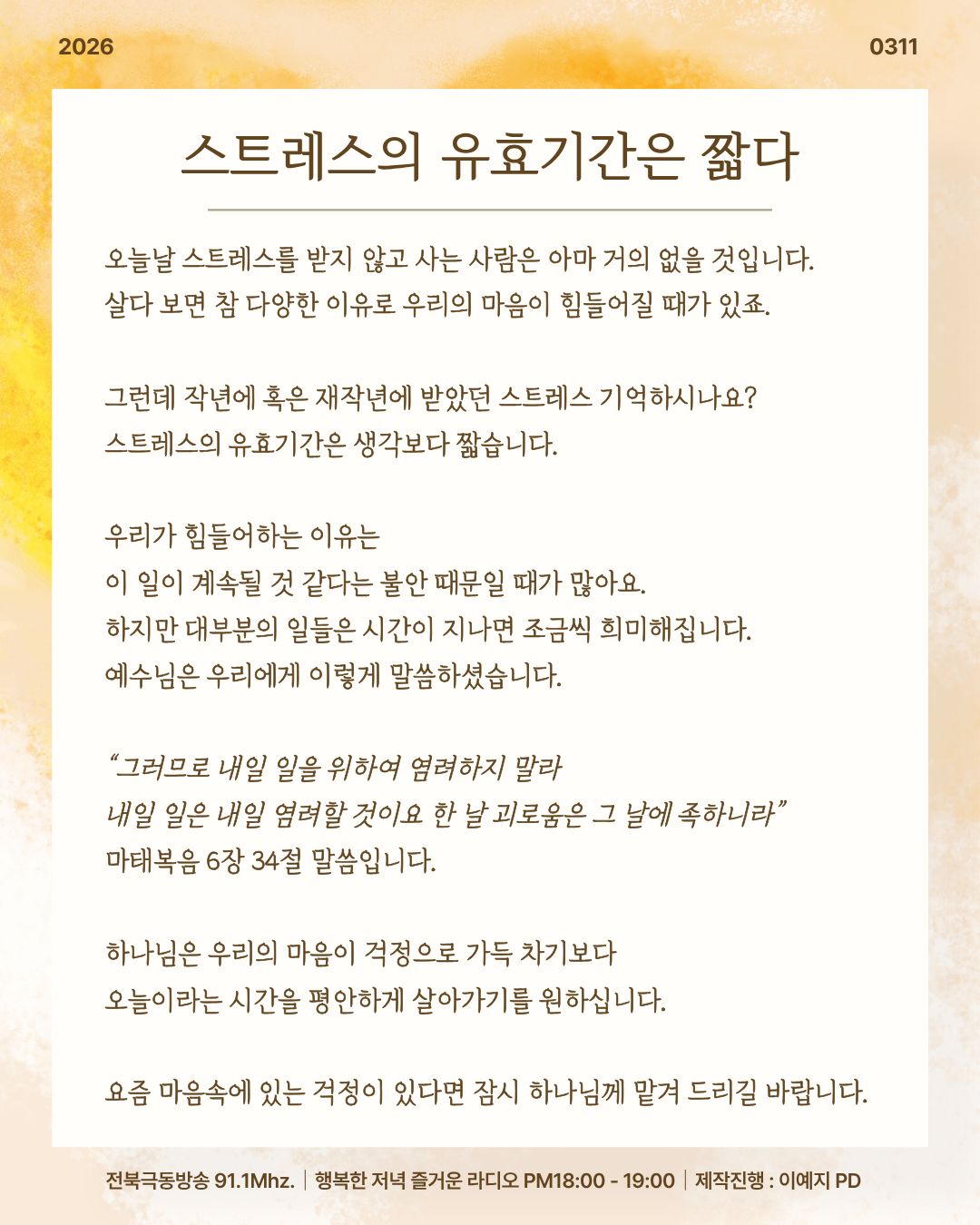 전북극동방송 행저즐라 오프닝 [ 스트레스의 유효기간은 짧다 ]