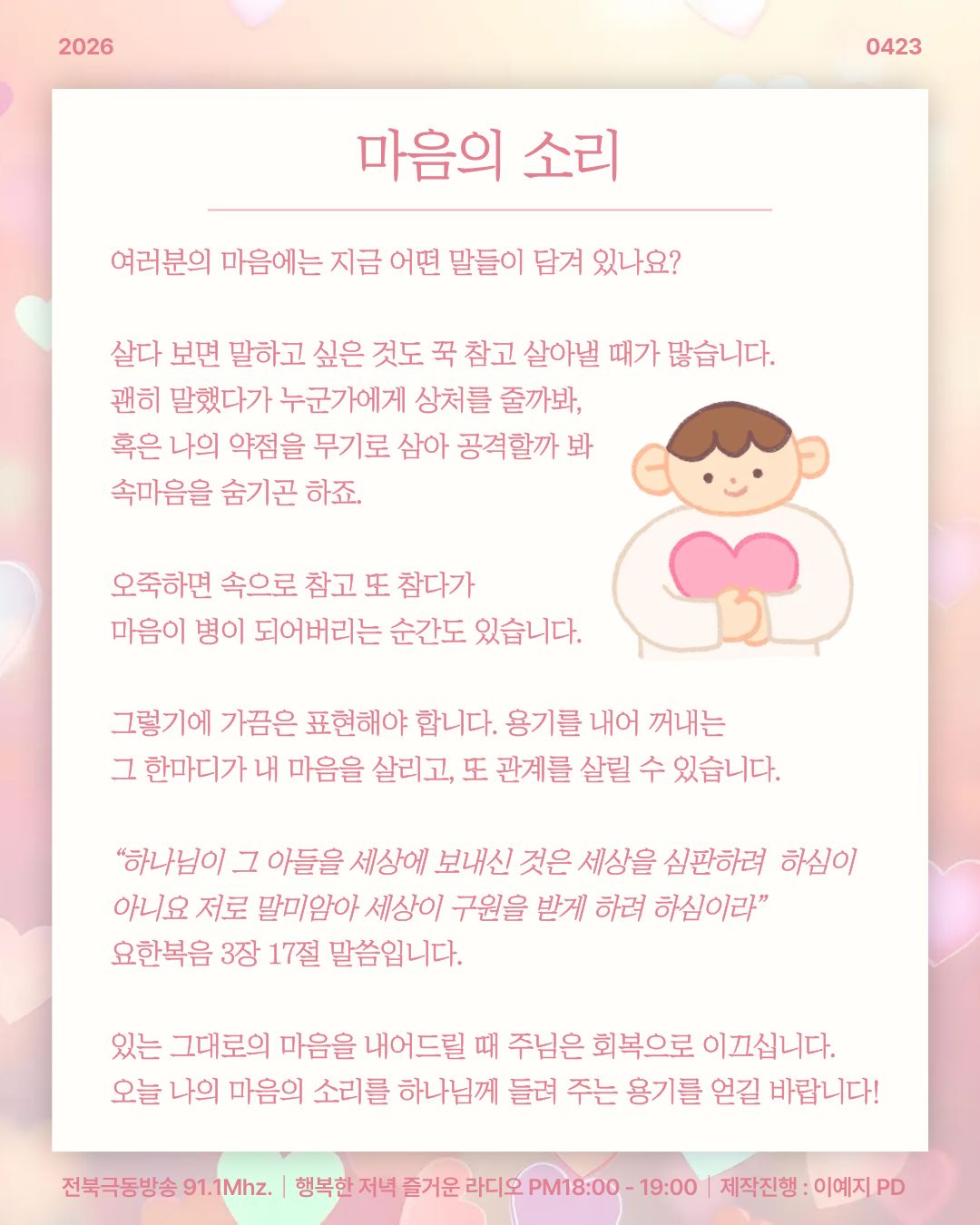 [ 마음의 소리 ] 전북극동방송 행저즐라 오프닝