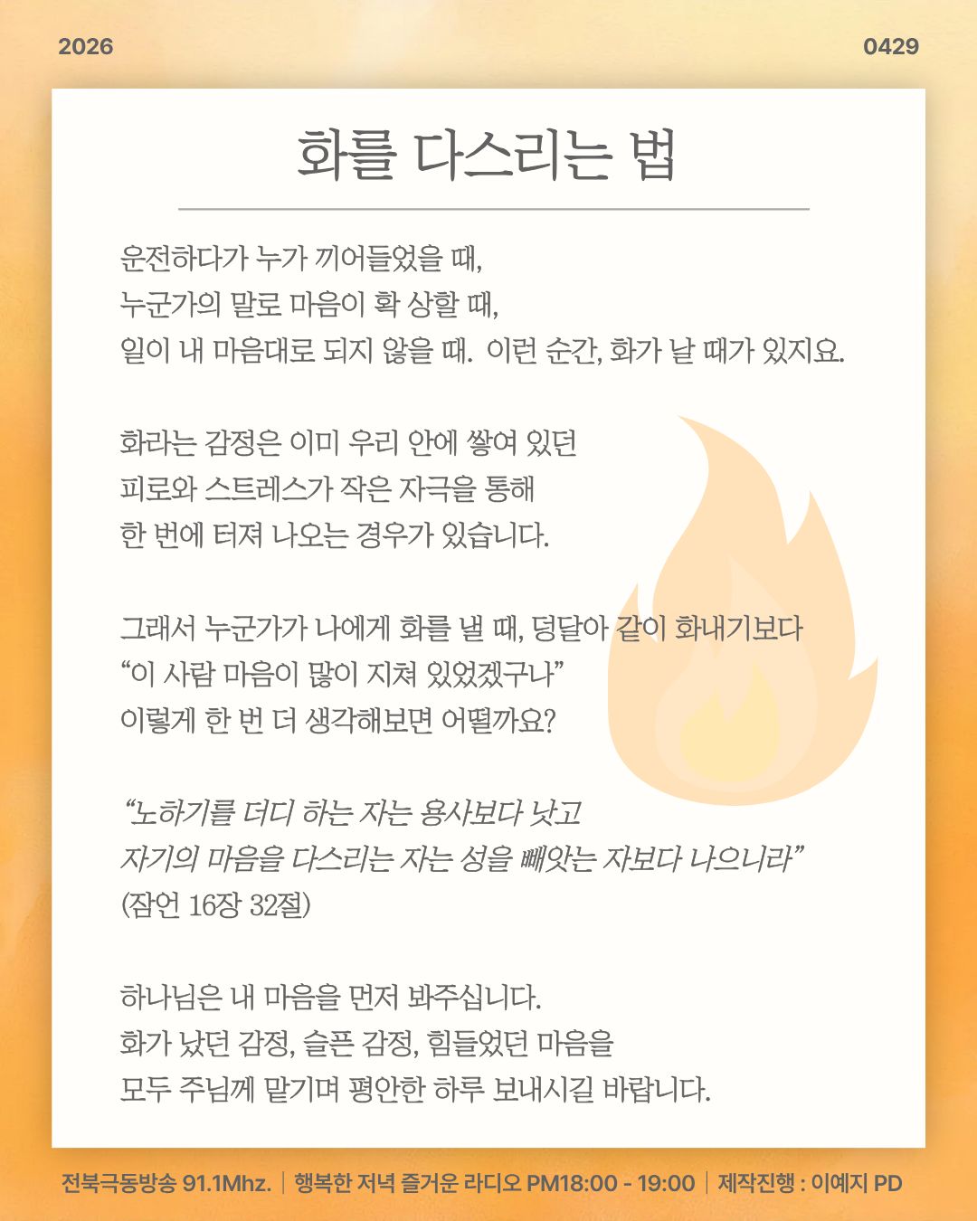 [ 화를 다스리는 법 ] 전북극동방송 행저즐라 오프닝