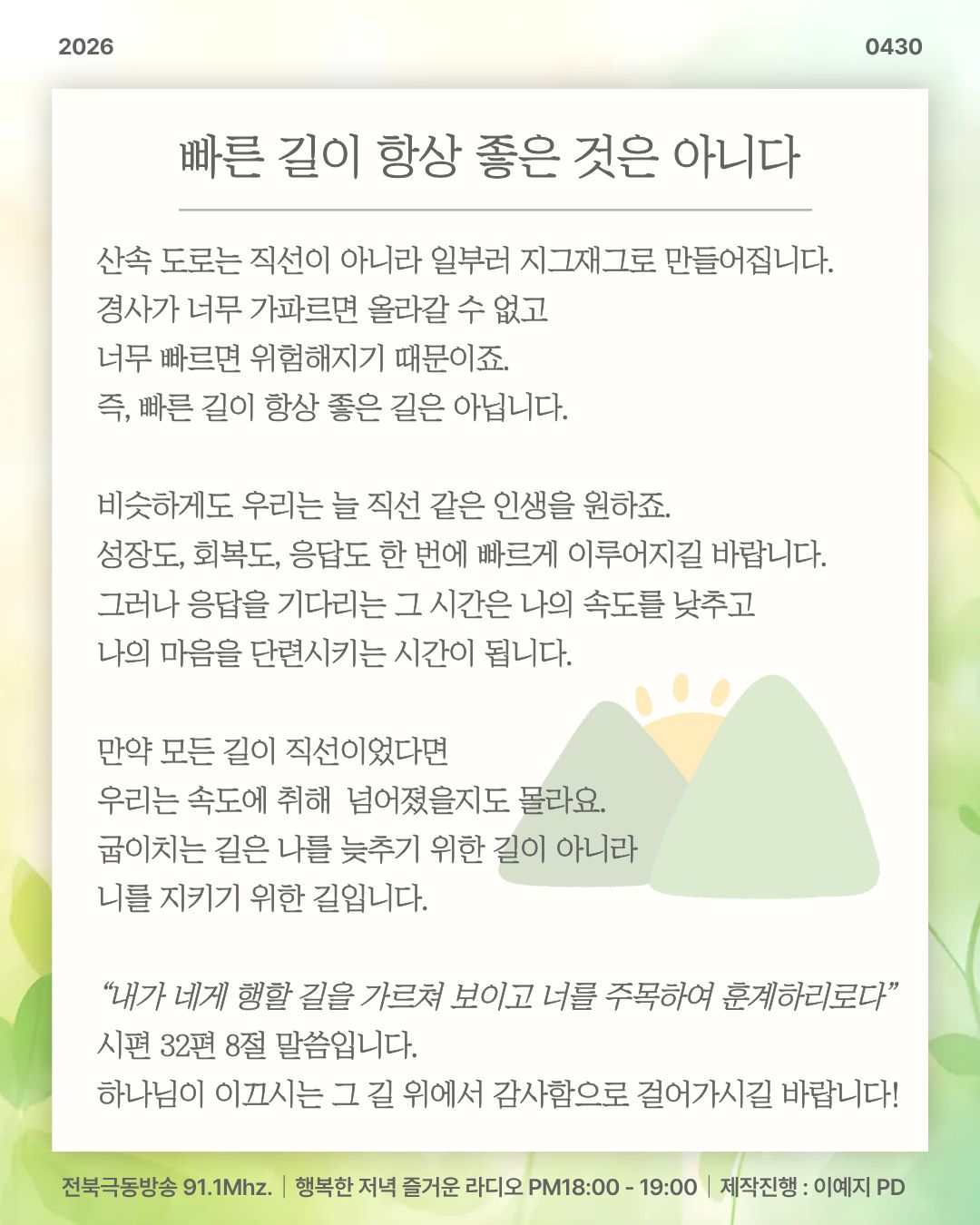 [ 빠른 길이 항상 좋은 것은 아니다 ] 전북극동방송 행저즐라 오프닝
