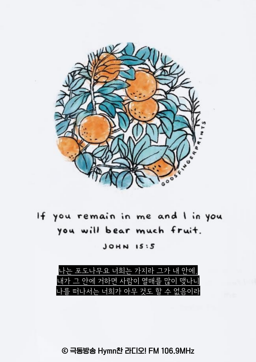 포도나무 되신 주님께 딱! 붙어 있을 수 있기를 기도해요. 그래서 성령의 열매를 풍성하게 맺고, 주님 주시는 영양분을 날마다 공급받으며 살아가는 우리가 될 수 있기를 소망해요. 저도, 여러분도 오늘 이 하루! 우리 주님께 착 붙어 살아가는 하루가 되기를, 또 우리의 삶이 되기를 예수님의 이름으로 응원하고 축복합니다.