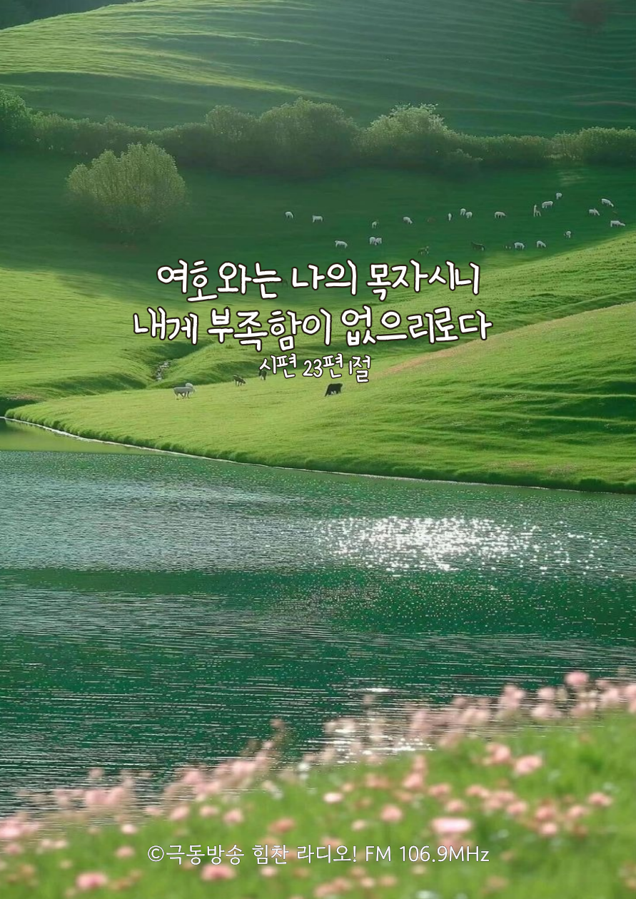 여호와는 나의 목자시니 내게 부족함이 없으리로다.